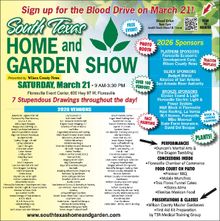 The South Texas Blood and Tissue Center will have a Mobile Blood Donation Station, March 21, 2026 from 9am to 2pm, during the 19th Annual South Texas Home and Garden Show at the Floresville Event Center, 600 Hwy 97 W, Floresville.